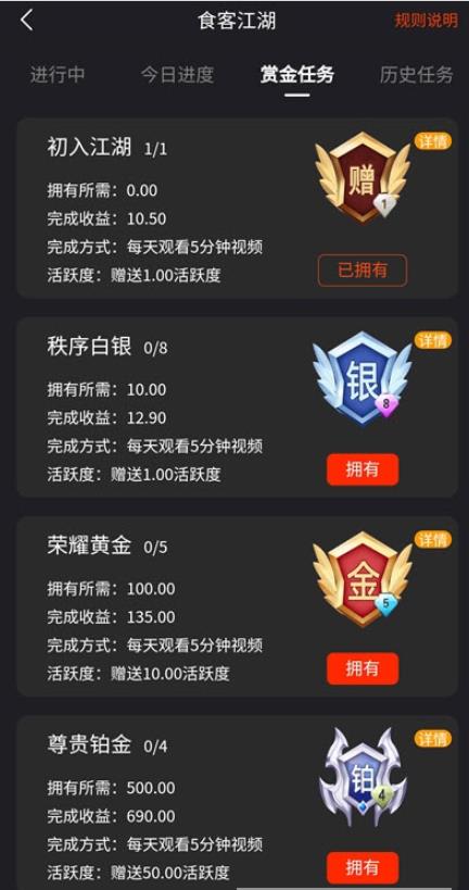 2.用户每天刷视频即可获得收益,点击赏金任务,就可以来接单;