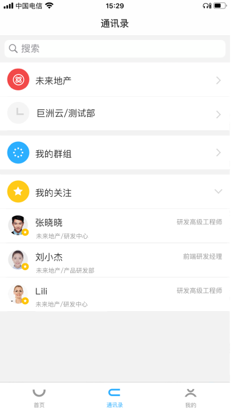 3、首页,通知公告查看,关注行业动态,通讯录,轻松联系同事,便捷交流。