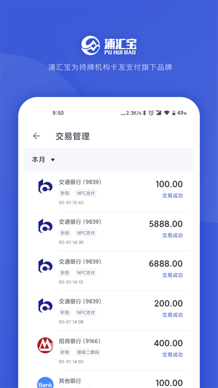 浦汇宝app是一款专业的手机收款工具,功能强大,能够自动帮助商家门店进行每日的营业收款,收款的信息将会语音播报,非常的方便,收款信息在软件上清晰的呈现,同时想要查看每一笔的资金流水也能够实现,满足不同店家或是商家的需求!