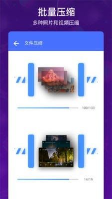 批量视频照片压缩app这是一款能帮助你压缩照片和视频的软件工具,这是款很强大的软件功能也是很全面,它能以高低的质量进行压缩视频,压缩快速便捷,还批量性的进行压缩视频,一键就能将相册里的所有照片进行压缩,照片大小在压缩是会进行自动调节,操作方便页面简洁。