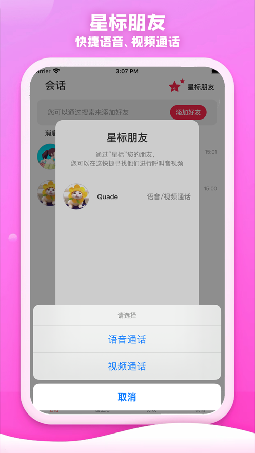 1、在这您可以和您的朋友畅所欲言;通过星标您的朋友,即可快速与TA进行语音、视频通话;