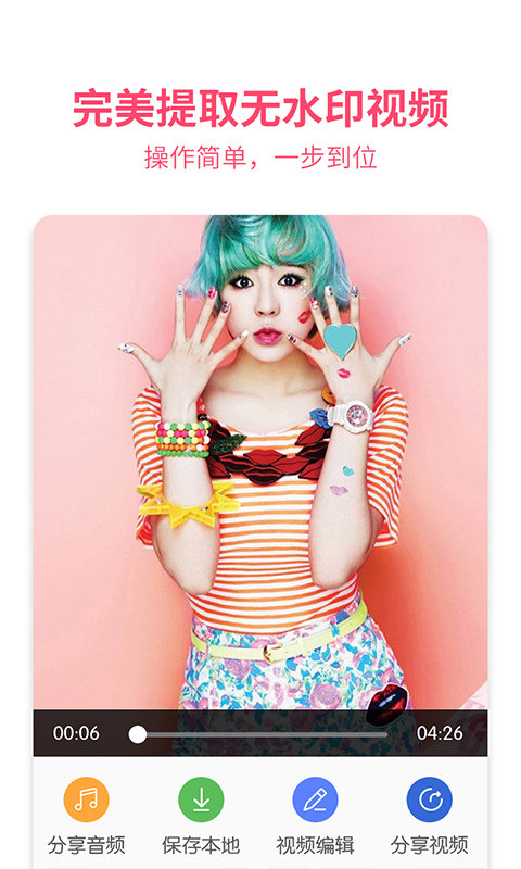 持一键解析提取无水印视频,全面支持绝大多数视频app平台的完美水印处理;