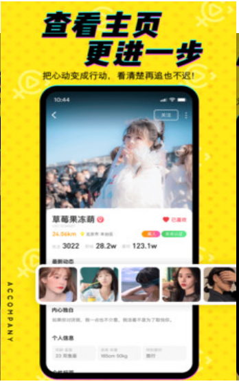 输入查看不同用户主页的基本内容,并结合他们喜欢的类型,可以在线互动以结交朋友;