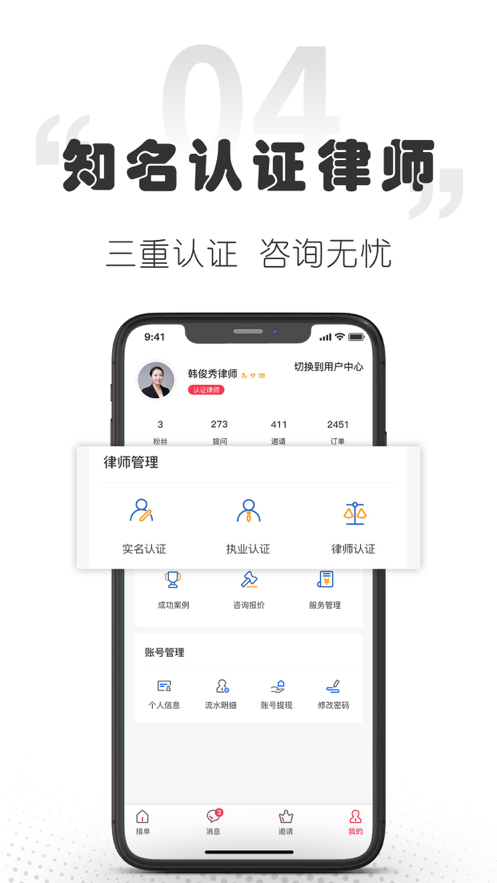 平台上有很多律师,您可以在此处发出相应的法律咨询服务订单,只要律师收到命令,他们就可以在线相互交流;