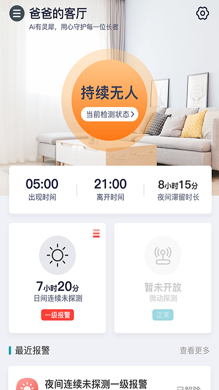 2、智能报警提醒,信息直接发送到看护端app内,让家人便捷查看;