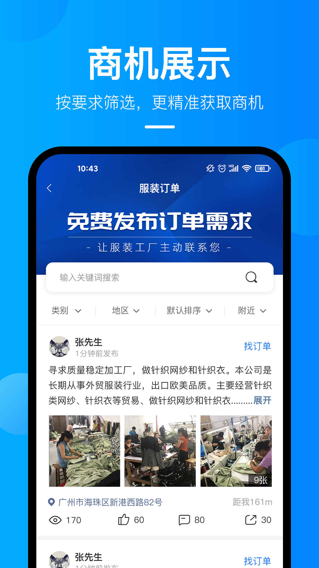 2、这个软件为广大服装商家提供了在线搜索纺织厂商的信息;