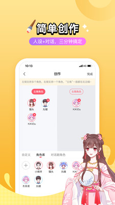 2、简单创作,快乐分享,创作你的人设,配上对话,3分钟就能搞定一部自己的点读小说;