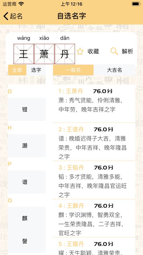 3、软件就会帮助你自动取好了。软件还会给你名字详解、评分和释义,非常简单方便。
