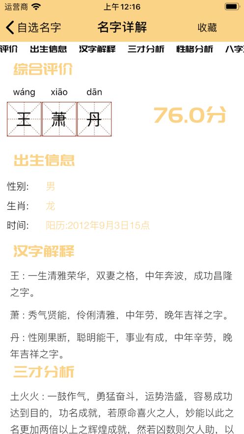 2、可以对你的名字进行详细的分析让你能够了解起名的详情;