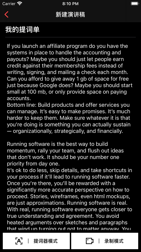 1.支持PDF、Microsoft Word、TXT 文件导入,支持自建提词文档;