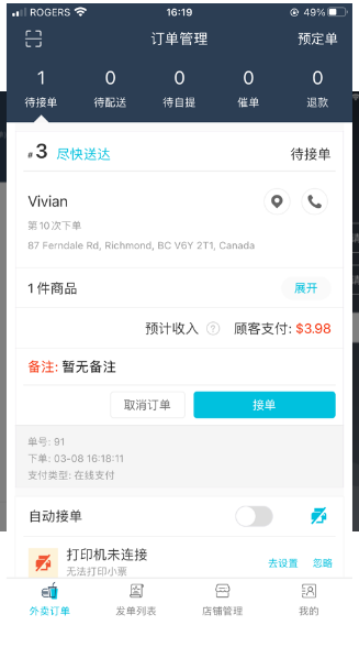 该软件的外卖管理功能可以避免收到无法完成的订单的类似情况。