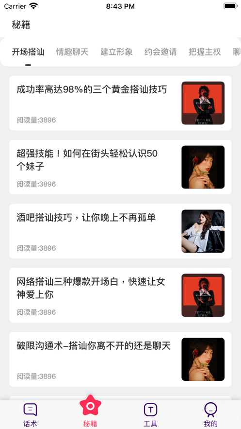 3、让用户可以学会怎么跟女生聊天,让用户可以在聊天过程中更加有趣,随时都不会冷场。