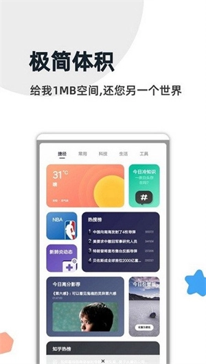 大小仅1.3MB,简单小巧的浏览器含有丰富功能,请君给我1.3MB空间,我将还您一个世界