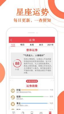而且结合各种特色功能,比如有星座运势、周公解梦、财喜罗盘、生肖运程等;