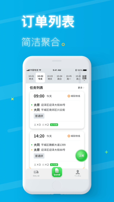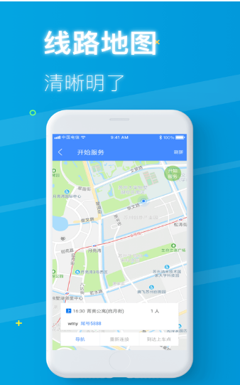 2、【操作智能,流程简便】智能订单推送、一键查询确认、最优线路规划、内置导航。
