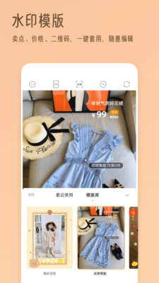 1、品牌水印、秒杀价格、店铺信息、活动海报...多款模版一键套用,无需设计和排版,只需修改文字内容。