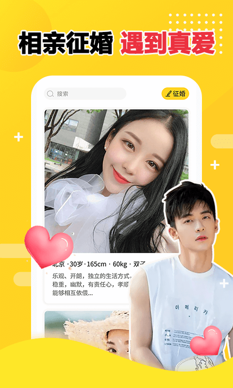 1、提供了同城交友、相亲征婚、实时聊天等功能,app通过算法帮助您匹配到情谊相投的人。