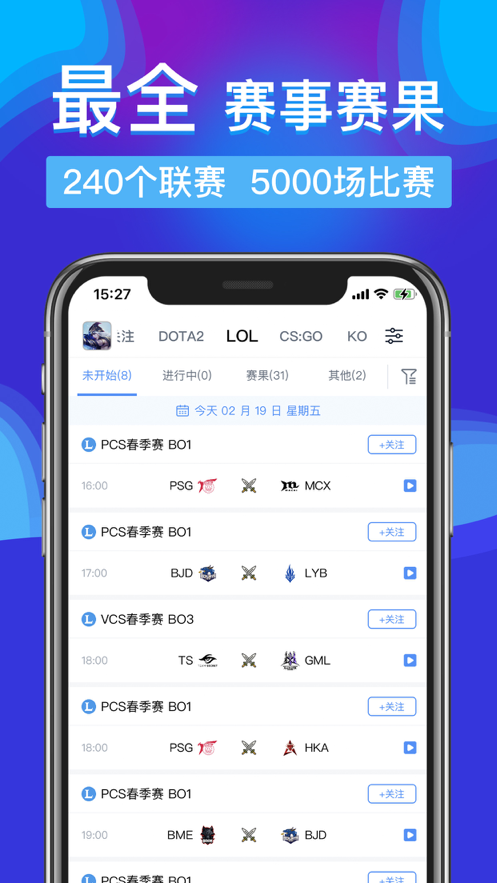 2、还可以关注自己感兴趣的职业赛事信息,以后可以轻松的了解许多比赛数据,让您掌握精彩的比赛内容;