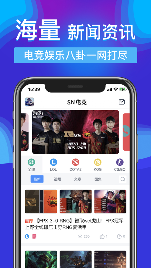 1、这个软件里面的各种电竞新闻更新快速,现在市场上各种热门的电子竞技新闻都有;