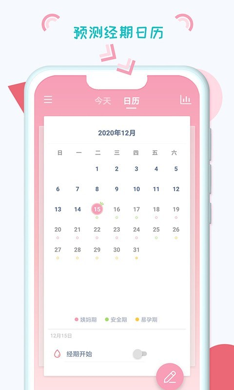 2、彩色日历标签显示周期预测,仙女每月笔记本应用程序可以让你直接浏览阿姨的月经趋势。