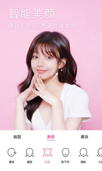 3、美颜功能非常齐全,美白、瘦脸、大眼睛等一键易用。