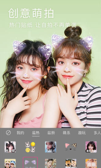 2.提供多种滤镜和贴纸,让你轻松拍摄个性化照片,美化五官。