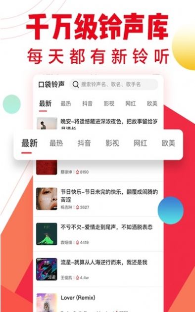 铃声大全:抖音快手、影视综艺、欧美、日韩等热门歌曲快速更新