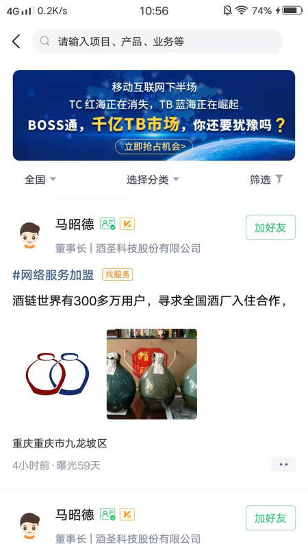 2、供需发布、融资找人、一应俱全,让老板不再有难做的生意,百万老板属于你;