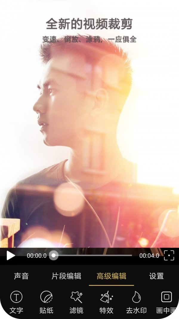 转场、分割、快放、慢放、贴图、音乐剪辑,多种剪辑效果为你的视频增光添彩;