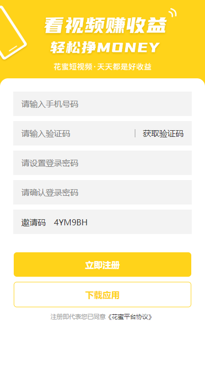 花蜜短视频app是一款非常好用的手机短视频软件,软件中具有超多不同种类的视频可以自由选择观看,都是高清无水印,并且免费提供给用户进行阅读,24小时不断更最新最热视频给到用户们,还可以在收获欢乐的同时赚收益,系统也是非常智能化,可以根据用户喜欢进行推送。