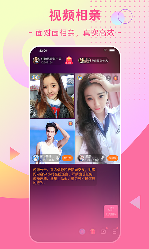 2、都经过真人认证,信息真实可靠,这里提供同城约会、速配交友、视频聊天、语音聊天等多种方式;