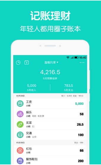 支持多人同时记账,同步操作,随时随地想进就记