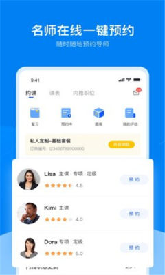 预约课程导师:预约时间灵活多样,可以满足学生不同时期的网上上课,也可以取消预约。