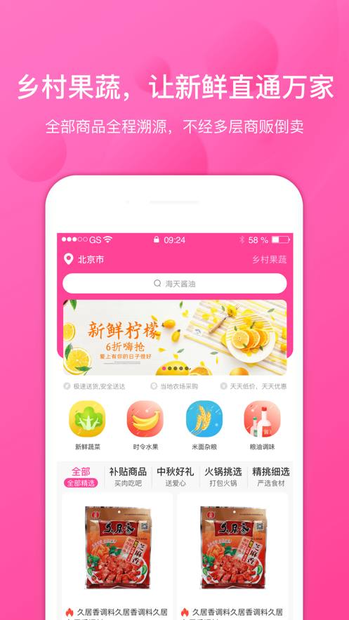 乡村果蔬app是一款果蔬商品购物平台软件,能够为用户提供一站式服务,为社区居民送菜到家,非常方便划算哦