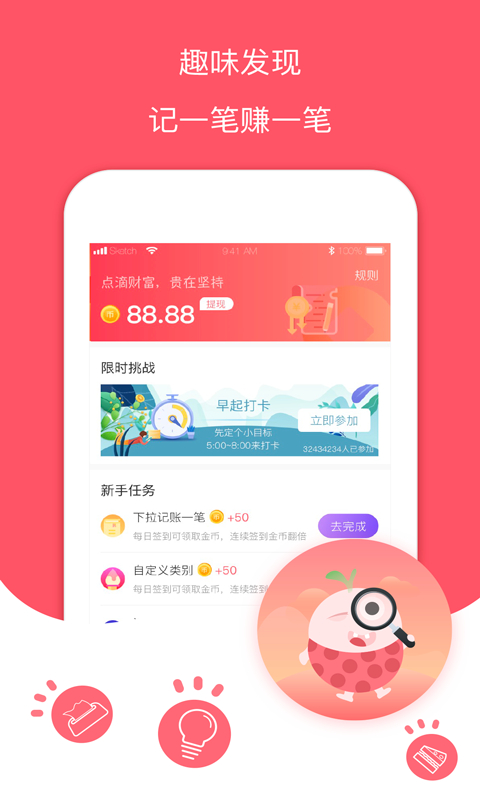 1.记账有礼:每天记账,各种礼物会提供给你。