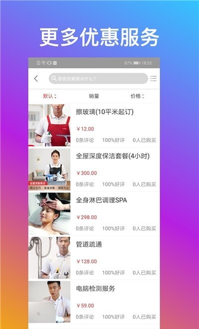 1.优享家app上的长工小时工、留宿保姆、托儿等各类服务项目,可以免费预约;
