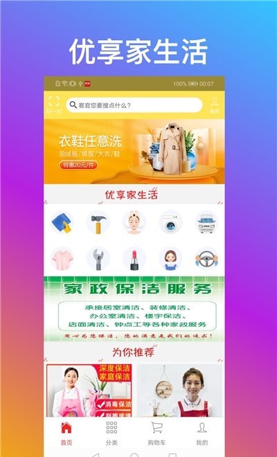 优享家app,专门的家政服务平台,让您的生活在家政的帮助下边的整洁又干净,速速下载体验吧!