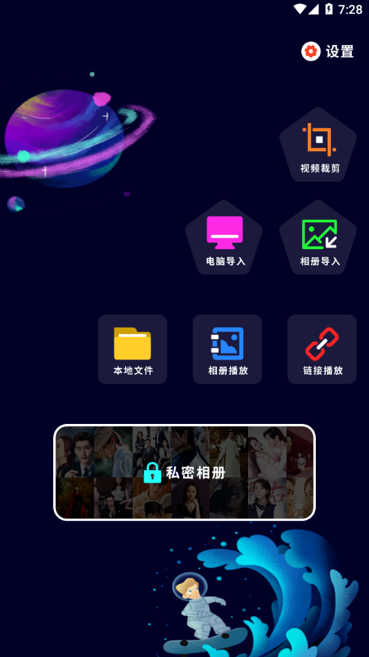 2、并提供了视频剪裁、相册导入、链接播放、相册播放等功能,并有私密相册可以设置哦!