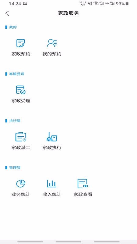 3.还有方便的家政服务。家政服务页面的管理提供了业务统计、收入统计和家政查看工具;