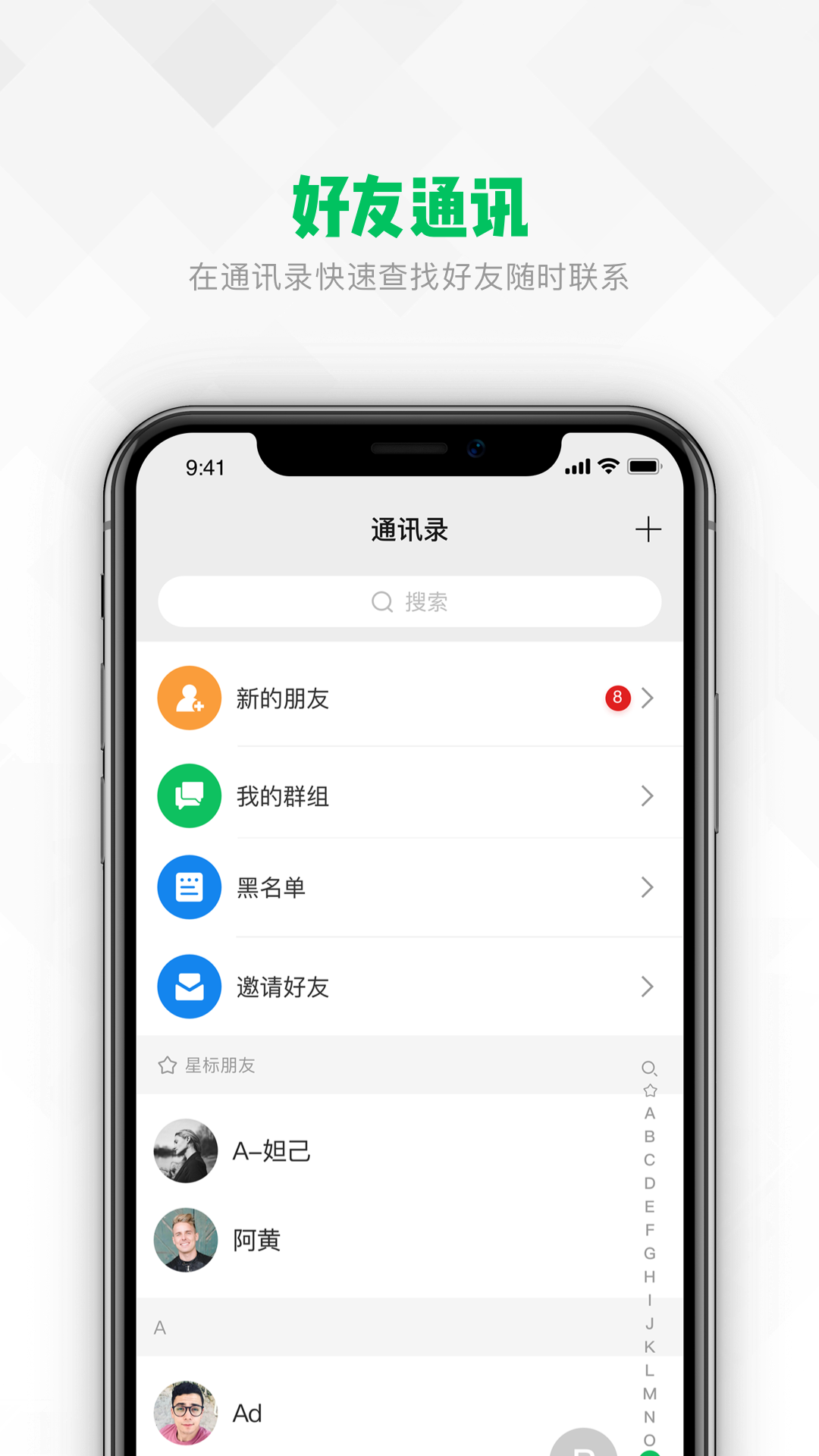 3、在亿迅,就是聊得来,通讯录快速查找好友随时联系。