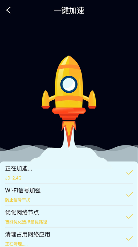 【一键加速增强】 WiFi上网信号强度随时掌握,一键优化加速网络速度,让你玩游戏看视频更顺畅;