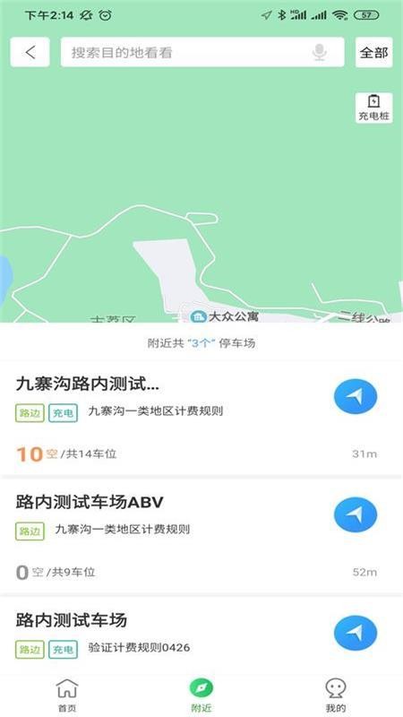 3.查看附近的停车位,进入附近页面,立即查看附近停车场的位置;