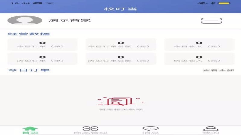 校叮当商家端是为校园内的商家设置的管理软件,为商家显示丰富清晰的业务数据,同时也实时显示今天的订单。此外,还开通了商品管理和消息中心;软件有实时信息传输系统,无论是最新的订单,还是最新的信息提示,都可以第一时间传输到位。