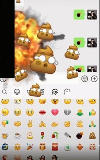 1.想要触发这个炸屎的动画效果,首先要一方发送“屎”的表情,而后另一方跟着发送出“炸弹”的表情。