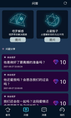3、我们新增“占星骰子”功能,您可以点击“问答”选择“占星骰子”进行提问哦。