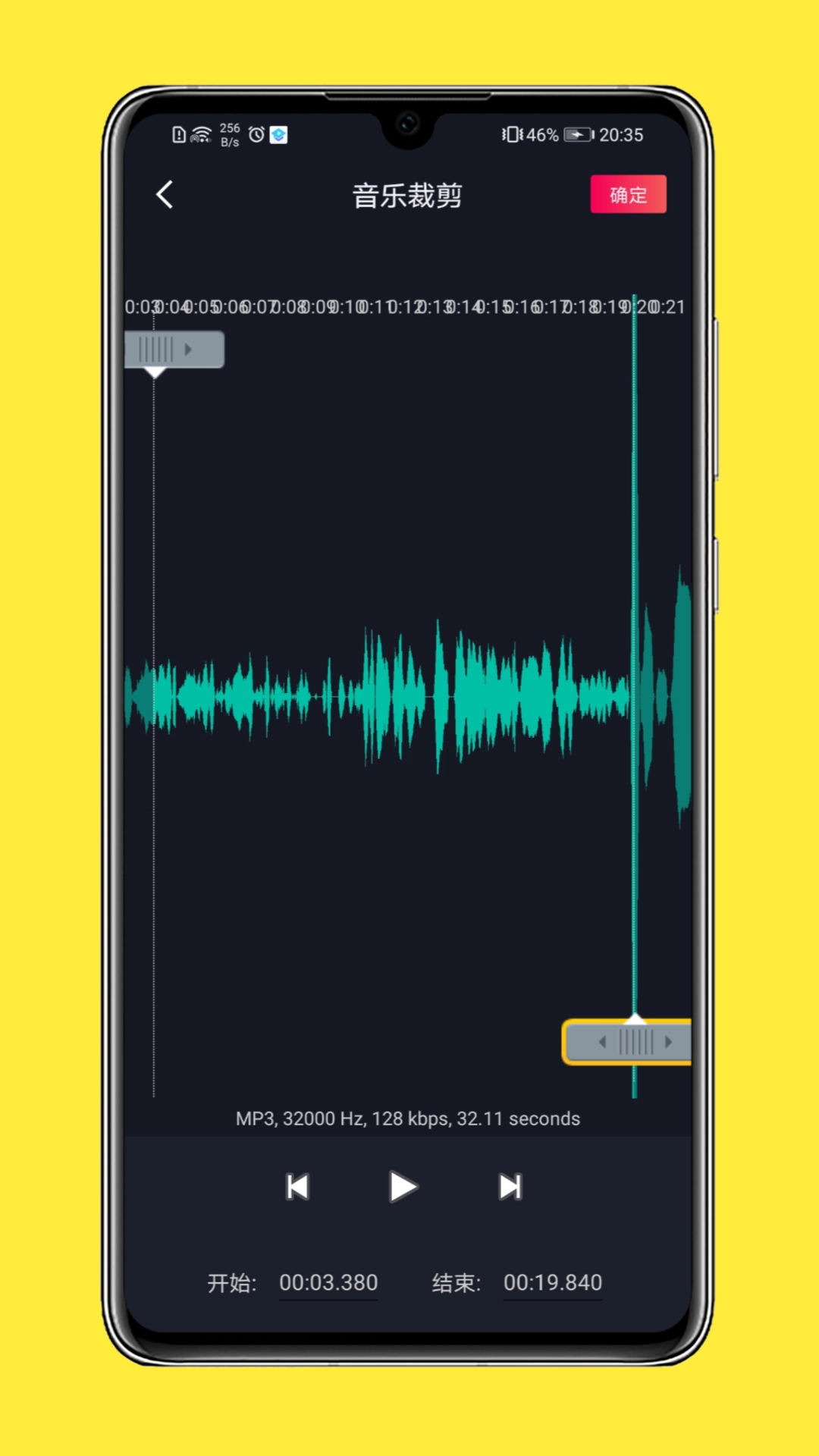 2、支持音频裁剪:指定开始和结束位置,进行截图音频。