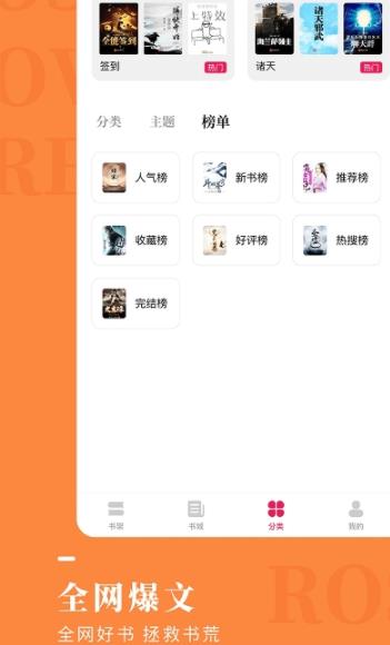 1、APP也给用户提供了各种热门小说的榜单推荐,让用户能更快的找到喜欢的小说进行观看。