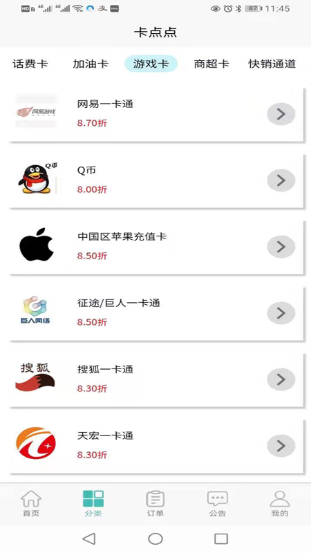 充值卡回收app,提供加油卡、电话卡、购物卡、游戏充值卡回收,安全、诚信、方便、快捷;