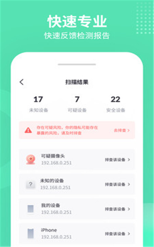 2、只要一键检测,就能让可疑的窥探设备露出原形;