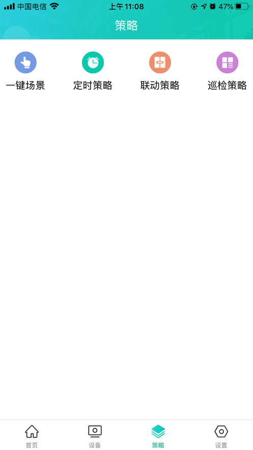 2、德云物联APP具备设备管理、场景设置、网关配置、策略管理、消息通知等功能;